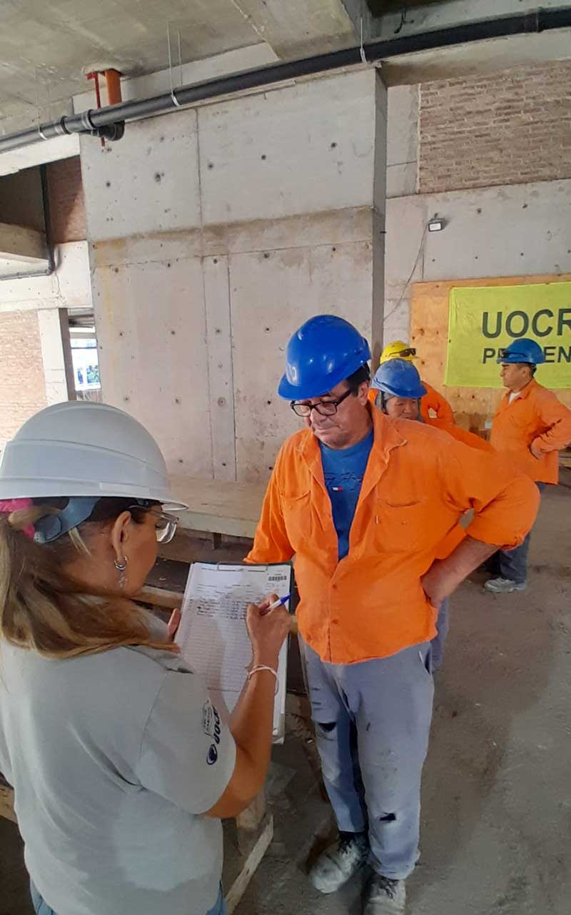 Relevar y procesar la información de las Condiciones y Medio Ambiente de Trabajo en la industria de la construcción (CyMAT), en las obras de construcción que se visiten, a los fines de articular las acciones necesarias.