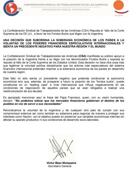 Una decisión que subordina la soberanía económica de los países a la voluntad de los poderes financieros especulativos internacionales y sienta un precedente negativo para nuestra región.